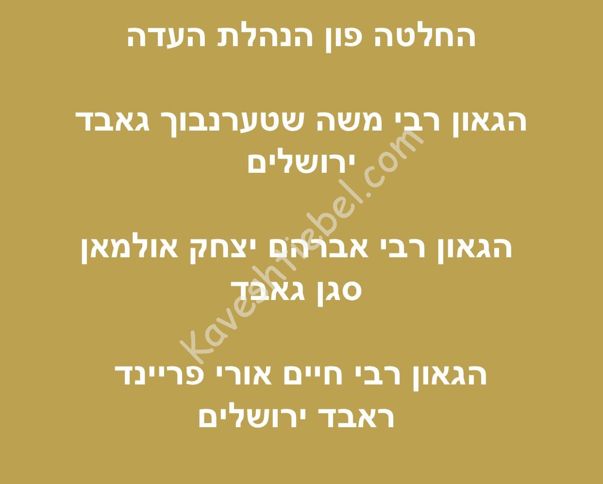 די אלע קהילות האבן נציגים אין דער וועד?בעל דרשן האט געשריבן:סאטמאר תולדות אהרן תולדות אברהם יצחק ברסלב דושינסקיא בוהוש משכונות הרועים קהל חסידי ירושלים סקולען פינסק קארלין און אביסל רחמיסטריווקא זיכער דא נאך וואס איך געדענק נישט אויפן מינוטהיסטאריע האט געשריבן:פאר וועלכע עולם דינט דער עדה החרדית?