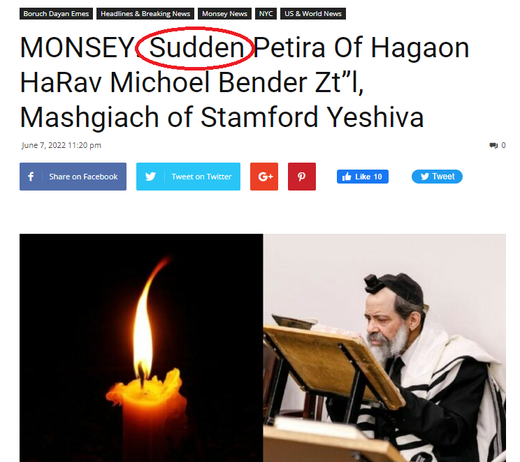 וואס איך פארשטיי נישט, זיי שרייבען אז זיי ווייסען נישט וואס דאס איז, די מענטשן זענען געזונט און פריש, מאכען עקסערסייז וכו'. און דאך זאגען זיי מען זאל גיין צו א הארץ דאקטאר. גיי פארשטיי.שאלתיאל האט געשריבן:פונקט באמערקט אן ארטיקל אין די דעילי מעיל איבער דאקטוירים וואס מוטשען זיך צו ערקלערן אן מיסטעריעזע ערשיינונג ווי יונגע מענטשן אונטער 40 יאר שטארבן פלוצלינג אן קיין פריערדיגע ווארענונגען אדער סימפטאמען, זיי רופן עס SADS סינדראם.