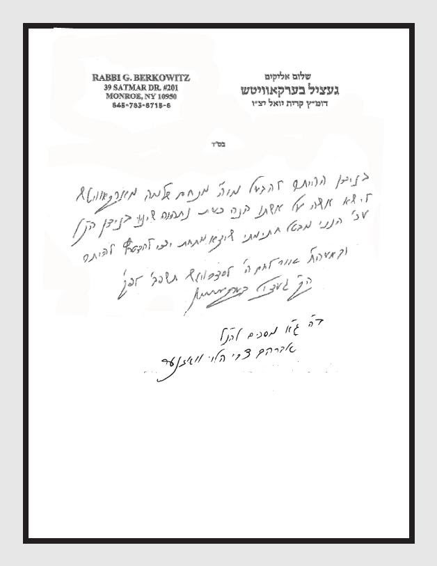 איך בין נישט באהאווענט אין די מעשה, נאר מ'האט ארויפגעלייגט דא פון אסאך רבנים און בתוכם ר' מענדל זילבער אז זיי זענען קעגן די היתר מאה רבנים