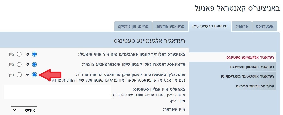 ביטע טשעק דיינע פרעפערענצן אין באנוצערס קאנטראל פאנעל (אונטער דיין ניק נאמען, אויף די לינקע זייט אויבן)