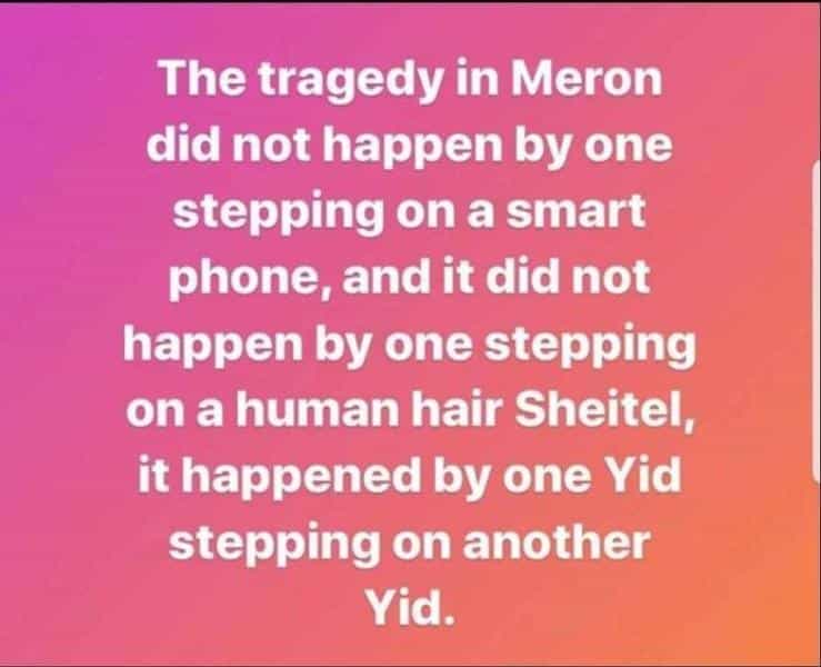 או אינו האט געשריבן:די פאליס ברויך מאכן זיכער אז עס איז דא סדר. כבר היה סטעמפידן אין מירון אין האבן זיך נישט געטארט לאזן פין די פרומע.